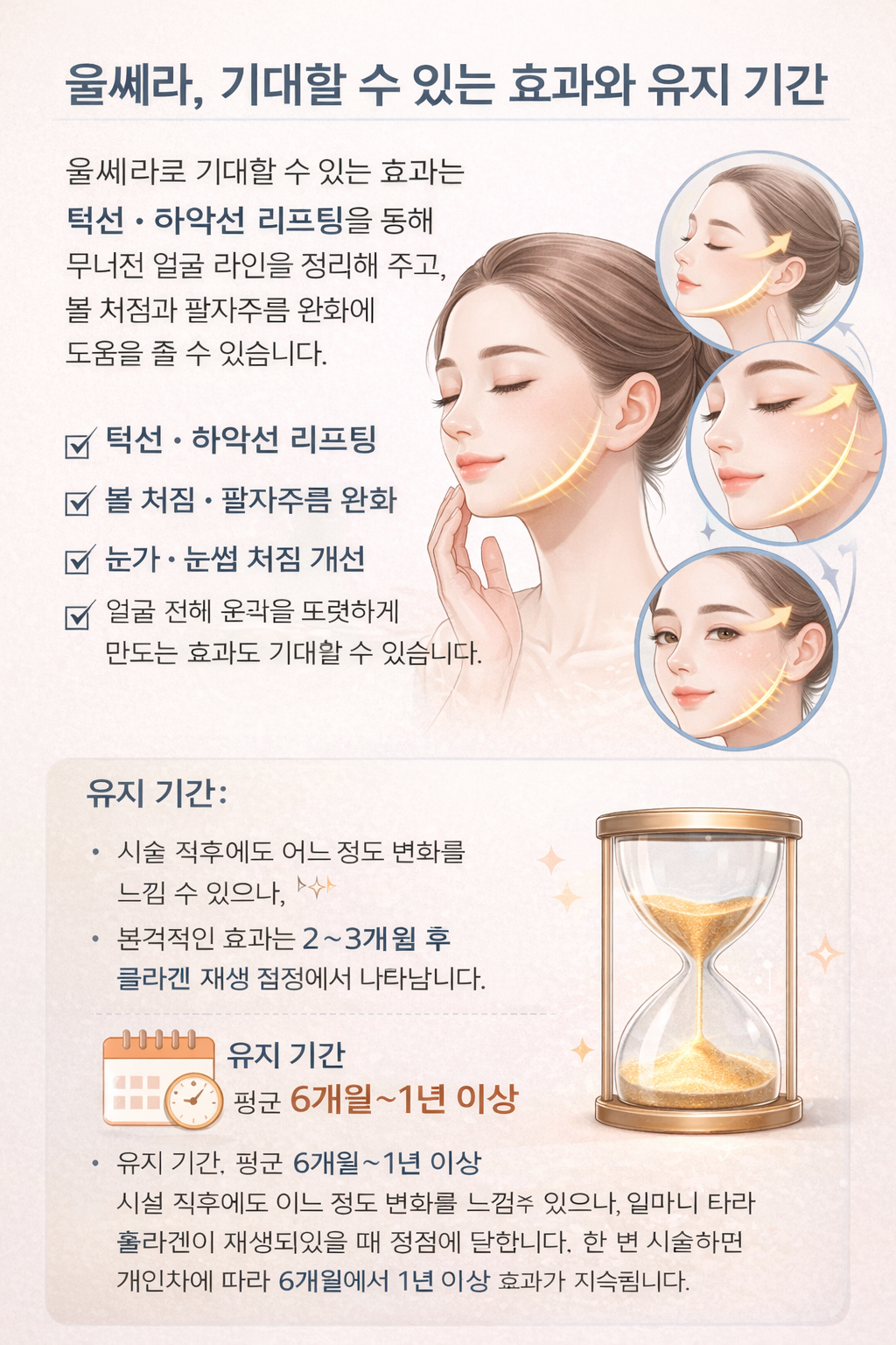 오늘은 울쎄라 효과부터 유지기간, 통증, 부작용, 그리고 가장 궁금해하시는 슈링크와의 차이점까지 완벽하게 정리해 보겠습니다. 🧐