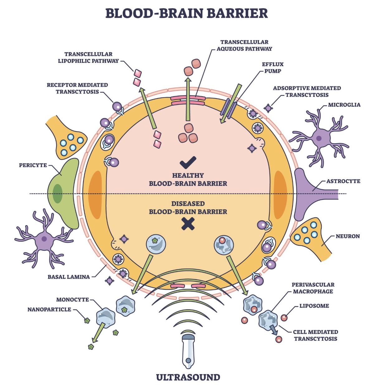 우리 몸에서 가장 중요한 기관인 뇌는 아무 물질이나 받아들이지 않습니다. 이를 위해 뇌혈관에는 일반 혈관보다 훨씬 촘촘하고 세밀한 방어막이 존재하는데, 이것을 BBB(Blood-Brain Barrier, 혈액-뇌 장벽)라고 부릅니다.
